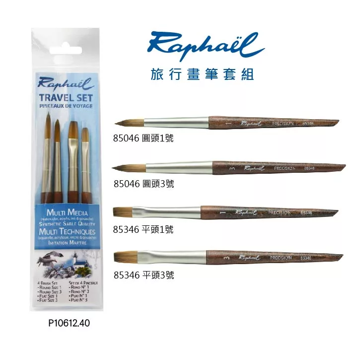 法國拉斐爾 Raphael 旅行用畫筆套組4支入 短桿 水彩筆組 P10612.30
