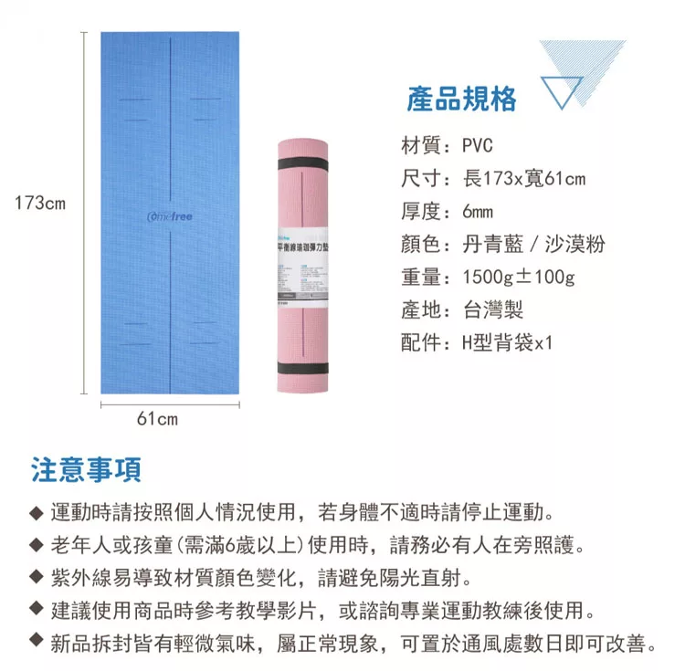 【Comefree 康芙麗】MIT平衡線瑜珈彈力墊(丹青藍)