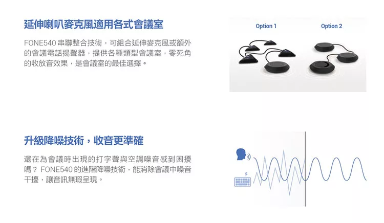 簡易安裝使用,串聯整合技術可串接額外的喇叭 麥克風,提供會議室商業級音訊品質,提升視訊會議體驗。