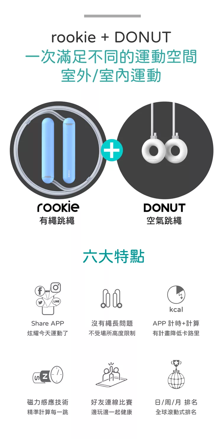 【好拾選物】健身智能計數跳繩/卡路里計算/無繩跳繩/小球跳繩/兩用款 -白藍色