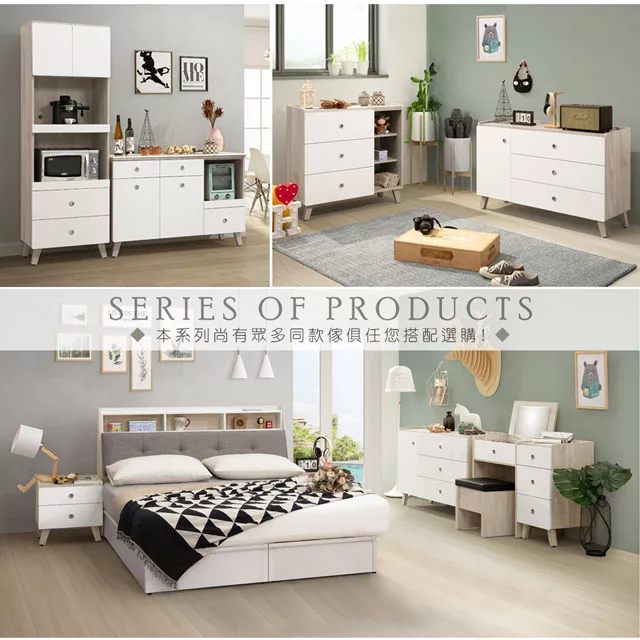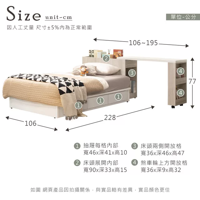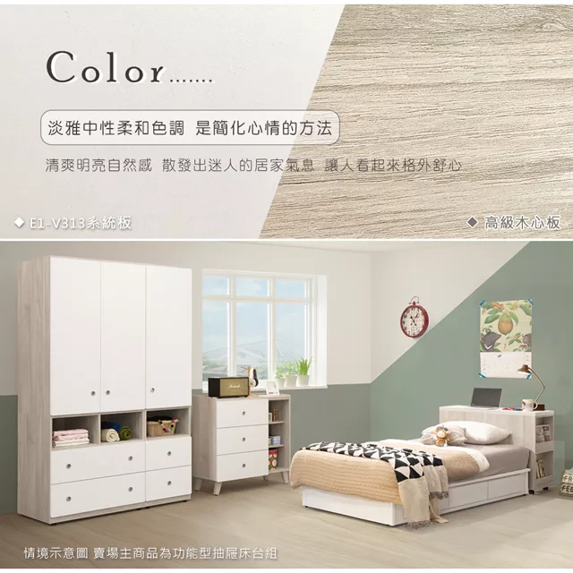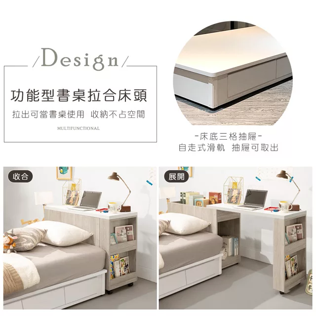 Homelike 喜家居單人3.5尺多格收納抽屜床台組(含側櫃)(2502)