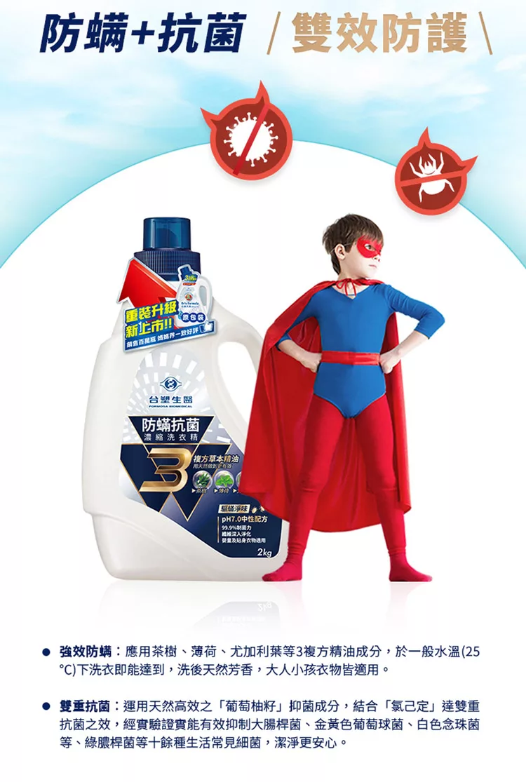 《台塑生醫》BioLead防蹣抗菌濃縮洗衣精2kg(3瓶入)
