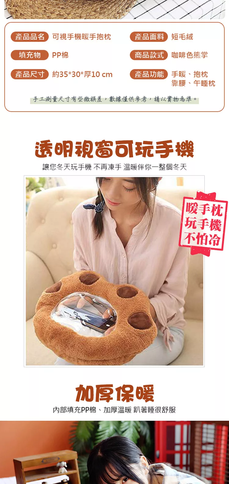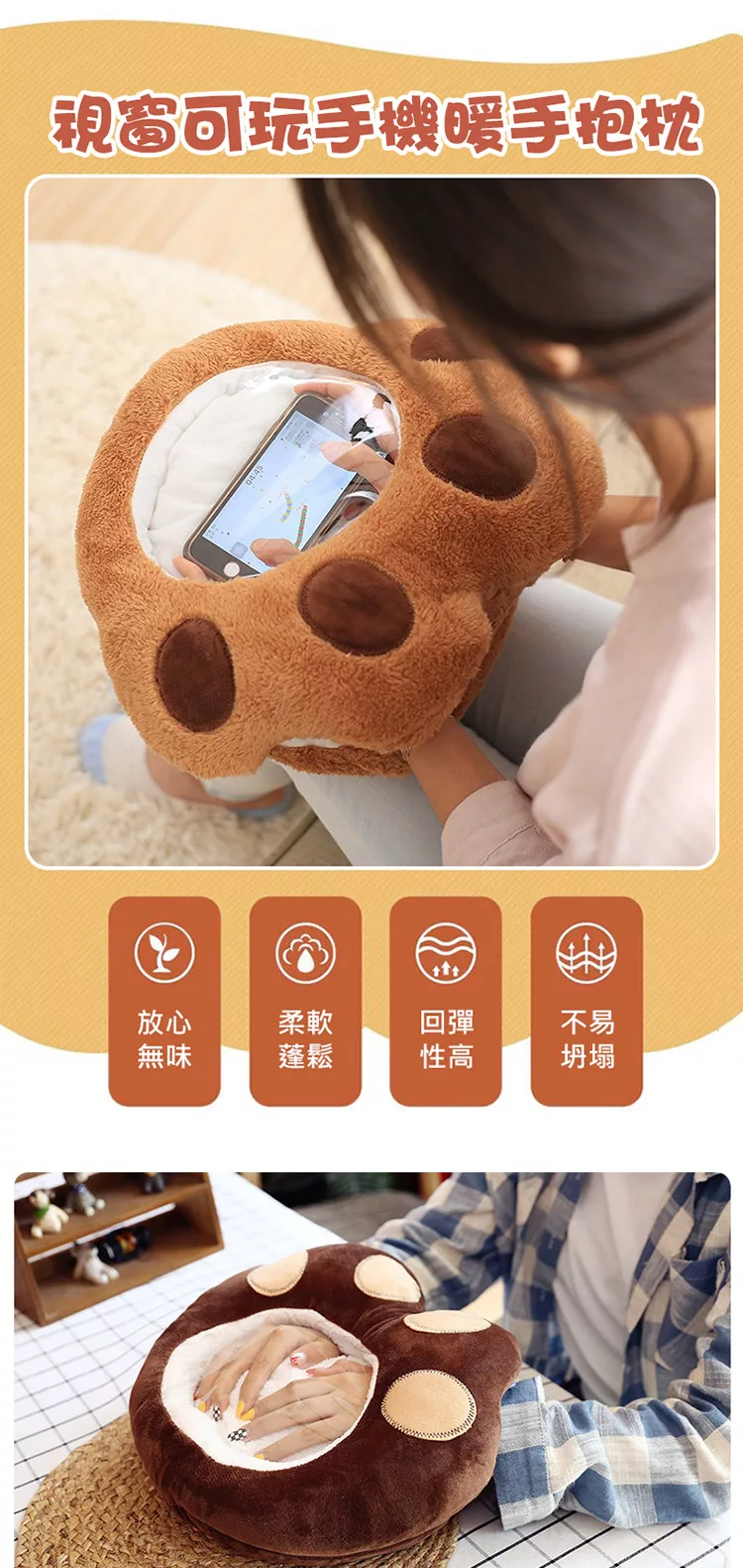 透明可視手機暖手抱枕 可視透明暖手枕 暖手寶 視窗暖手抱枕 透明手暖套 靠垫 可插手抱枕 午睡枕 腰靠枕 沙發枕 雙插手摀 毛絨玩具 熊爪 居家 玩手機神器 趣味禮品