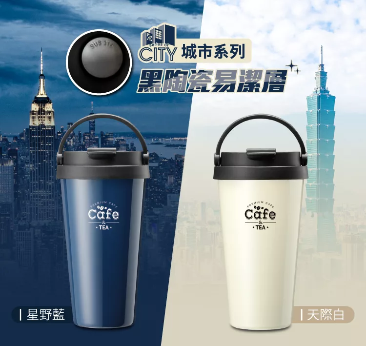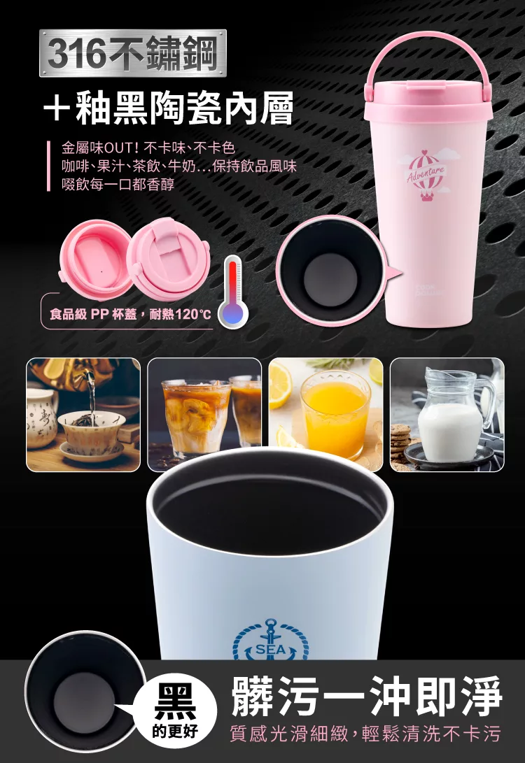 【日本FOREVER】316不鏽鋼咖啡杯/陶瓷塗層雙飲蓋/保溫杯530ML -黑色