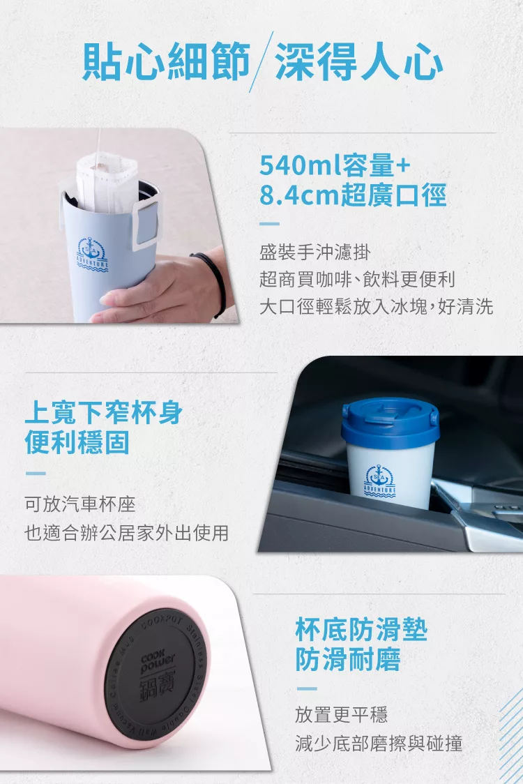【日本FOREVER】316不鏽鋼咖啡杯/陶瓷塗層雙飲蓋/保溫杯530ML -燕麥白