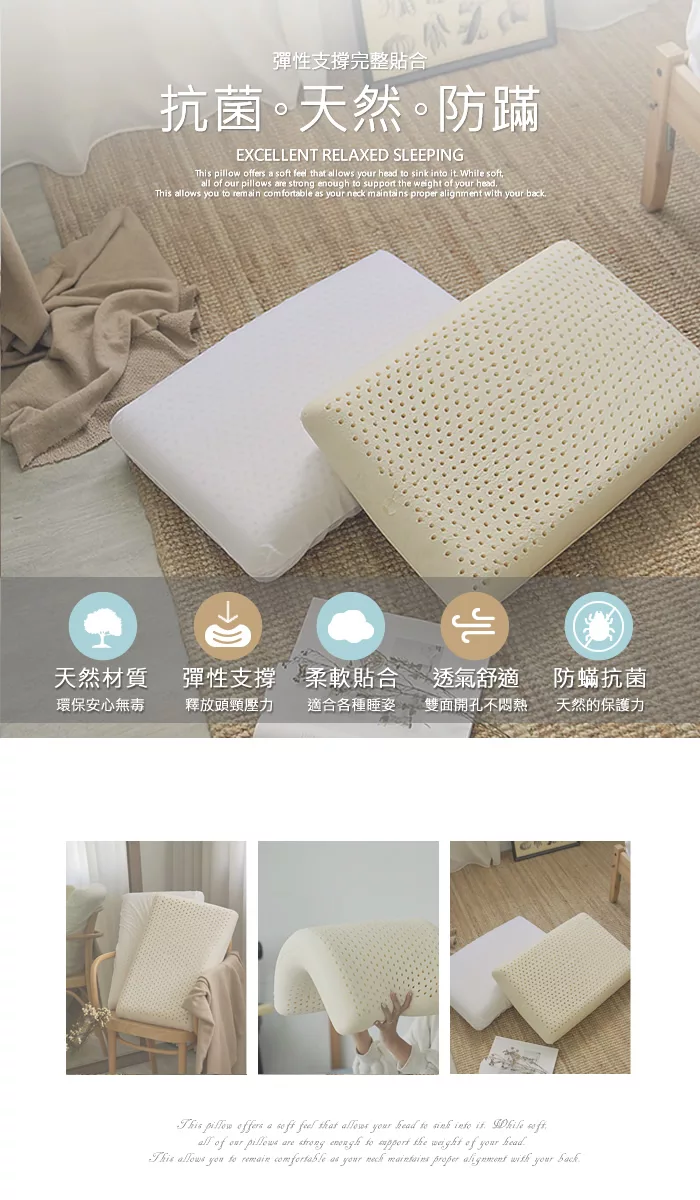 【AGAPE雅家倍】100%天然舒適乳膠枕 1入 兩款任選 平面乳膠枕