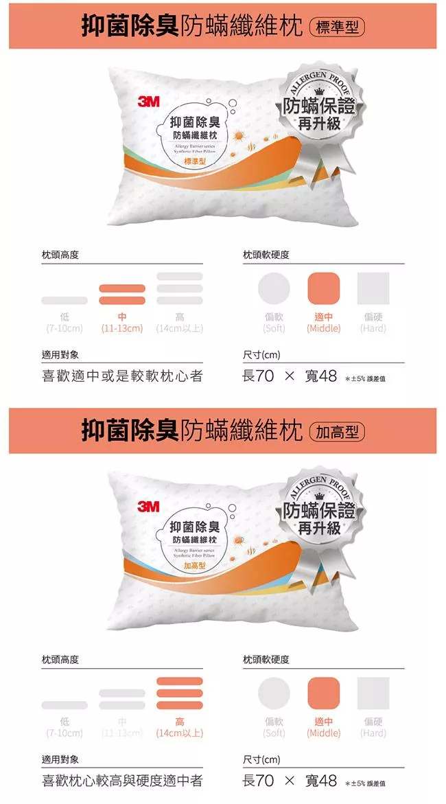3M ANTI002 抑菌除臭防蹣纖維枕-加高型