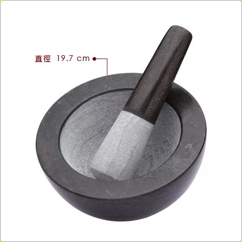 尺寸:缽直徑 19.7 x 高 11.7 cm、缽口直徑 14 cm;杵直徑 5 x 高 20 cm