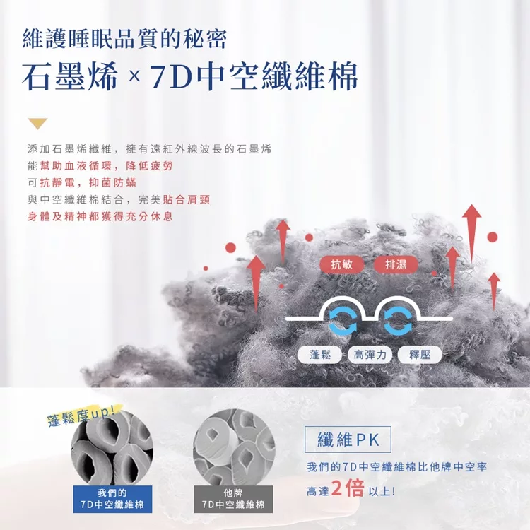 ▪7D中空纖維棉,快速釋壓