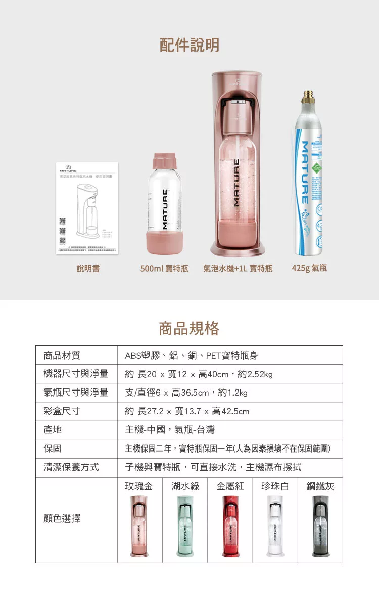 【限量福利品】mysoda北歐木質氣泡水機(粉)WD002-LP