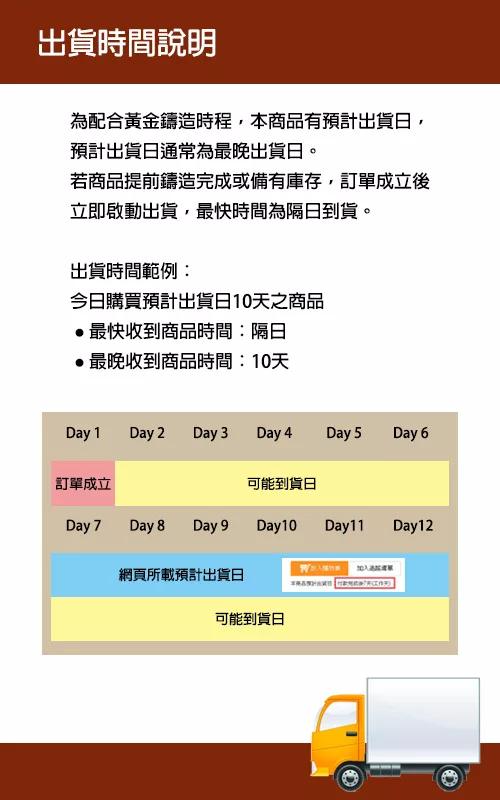- 2除特殊商品送達時間於產品說明中另有標註外,原則上商品將於訂單完成、付款成功後 7 個工作天內送達(不含週六日)。