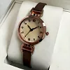 【HandStyle】女錶 切面花邊框簡約時標磨砂帶腕錶(80020) _褐色