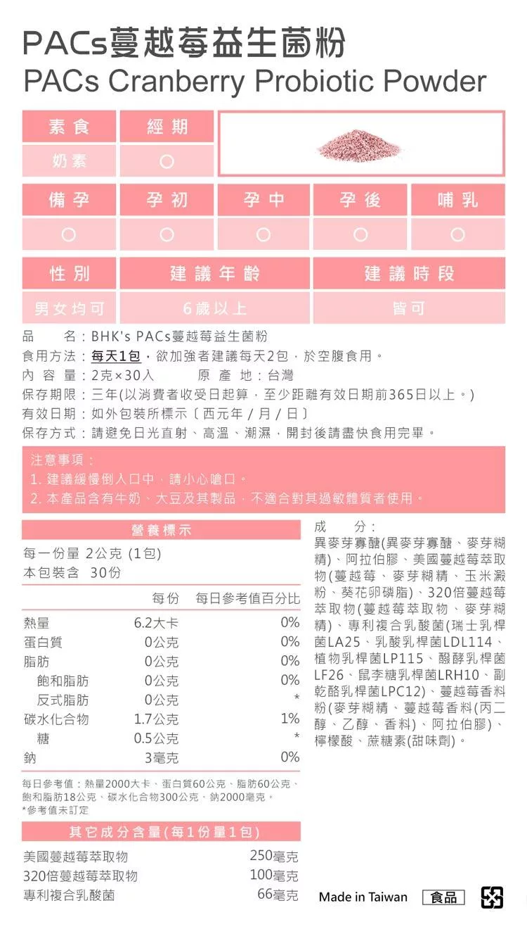 BHK’s PACs蔓越莓益生菌粉 (2g/包;30包/盒)