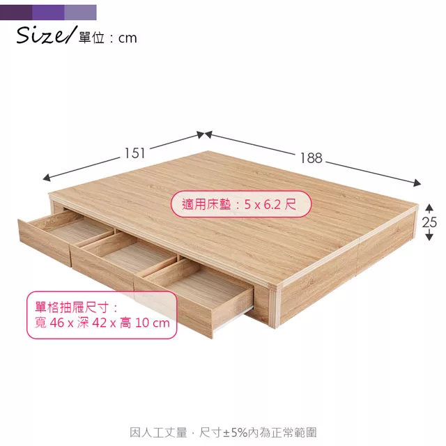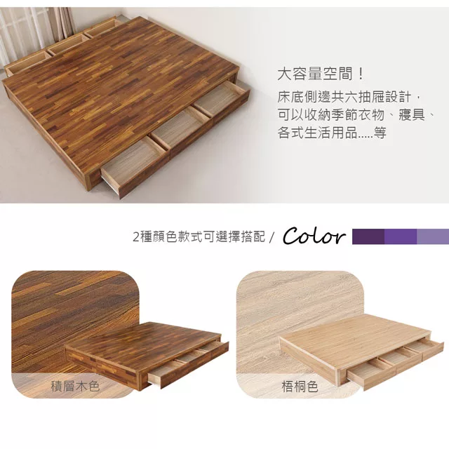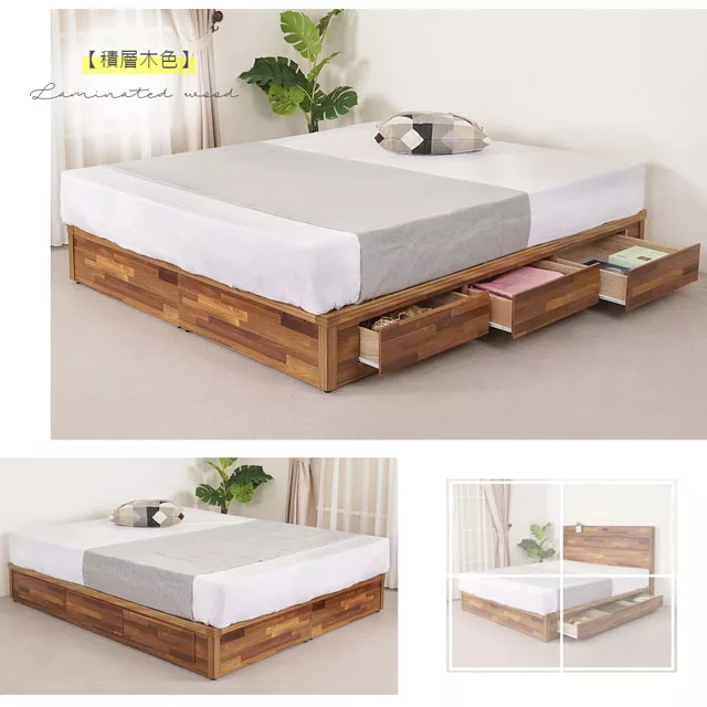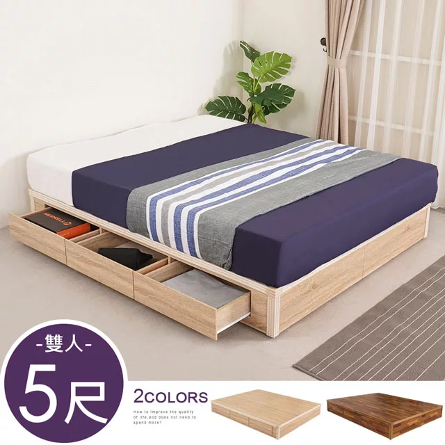 Homelike 喜家居雙人5尺六抽屜床組-原木色(2531)