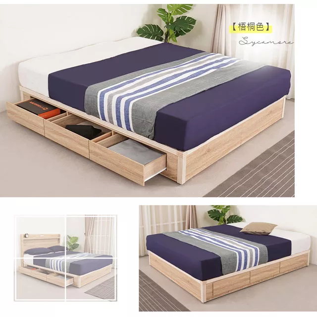 Homelike 喜家居附插座收納六抽屜床台組-雙人5尺(2542)