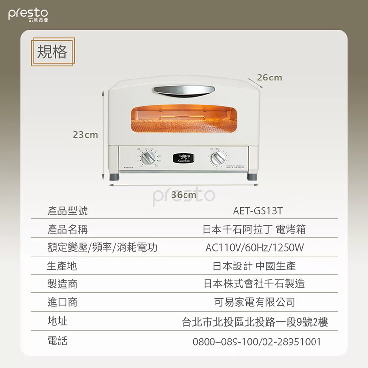 【料理升級版-最新蛋盤套組】日本Sengoku Aladdin 千石阿拉丁「專利0.2秒瞬熱」四枚燒復古多用途烤箱 AET-G13T 經典白