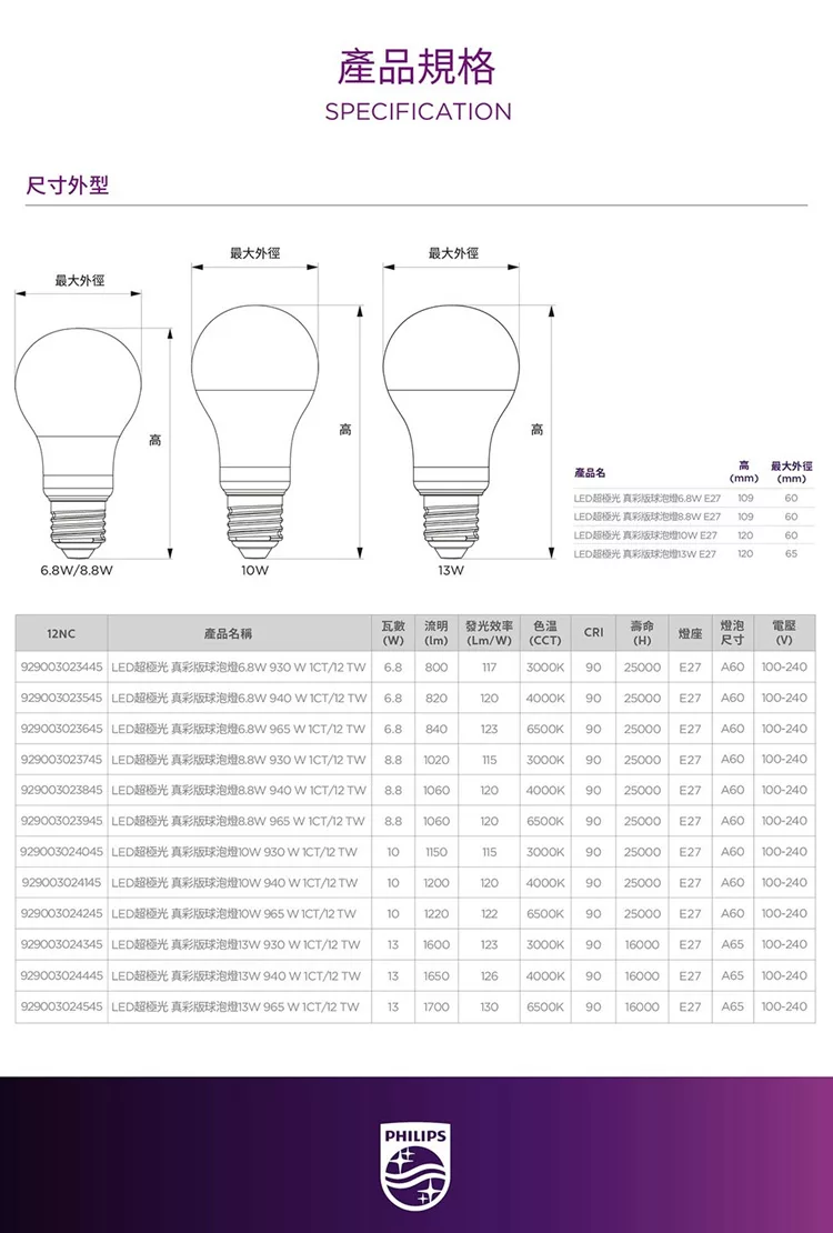 Philips 飛利浦 11.2W LED 超省電燈泡 6入 自然光