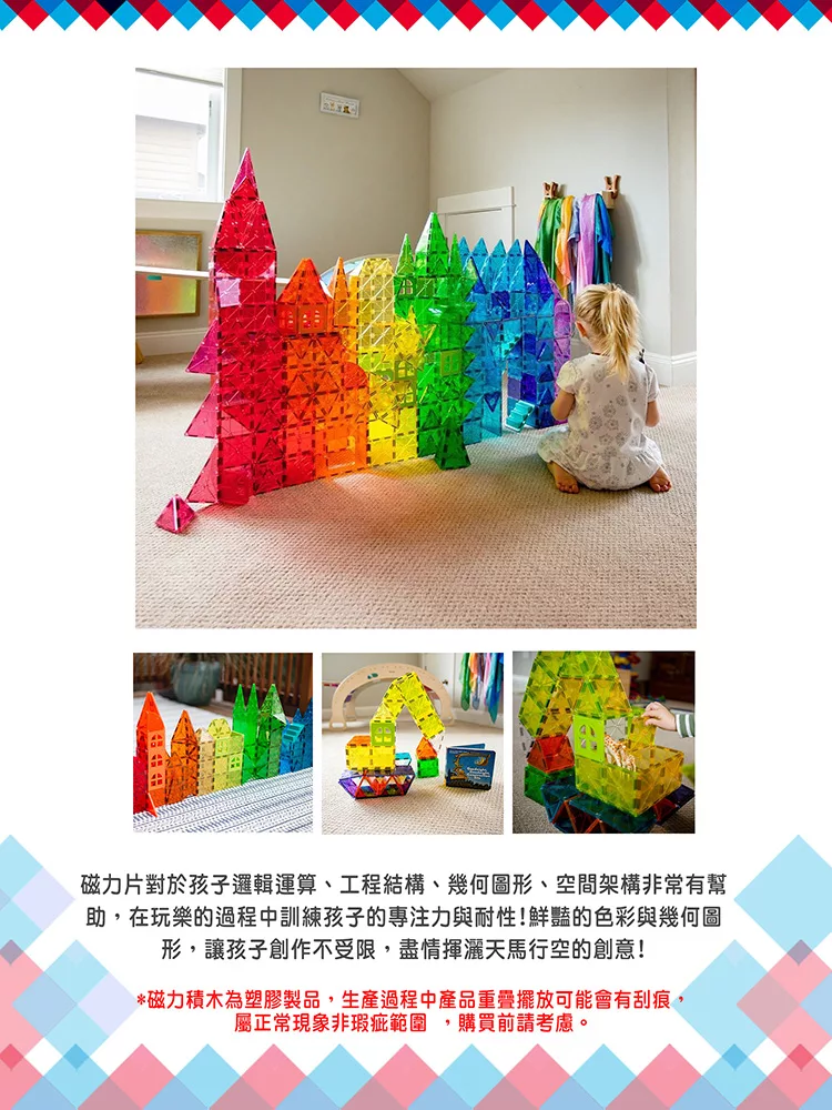 【ScienceBaby】雪鑽磁力片 創意家60PCS 彩虹色系 (MNTL Connetix相容) 大小磁力片組合