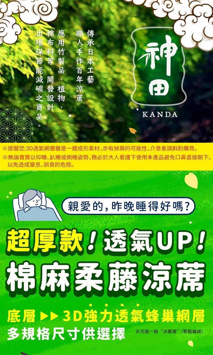 《神田職人》3D頂級特厚【柔藤】透氣涼蓆-B