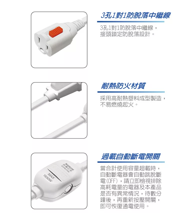 Tyson太順電業 343KS 3孔4切3座防塵蓋延長線(斜面開關/拉環扁插)-1.8M