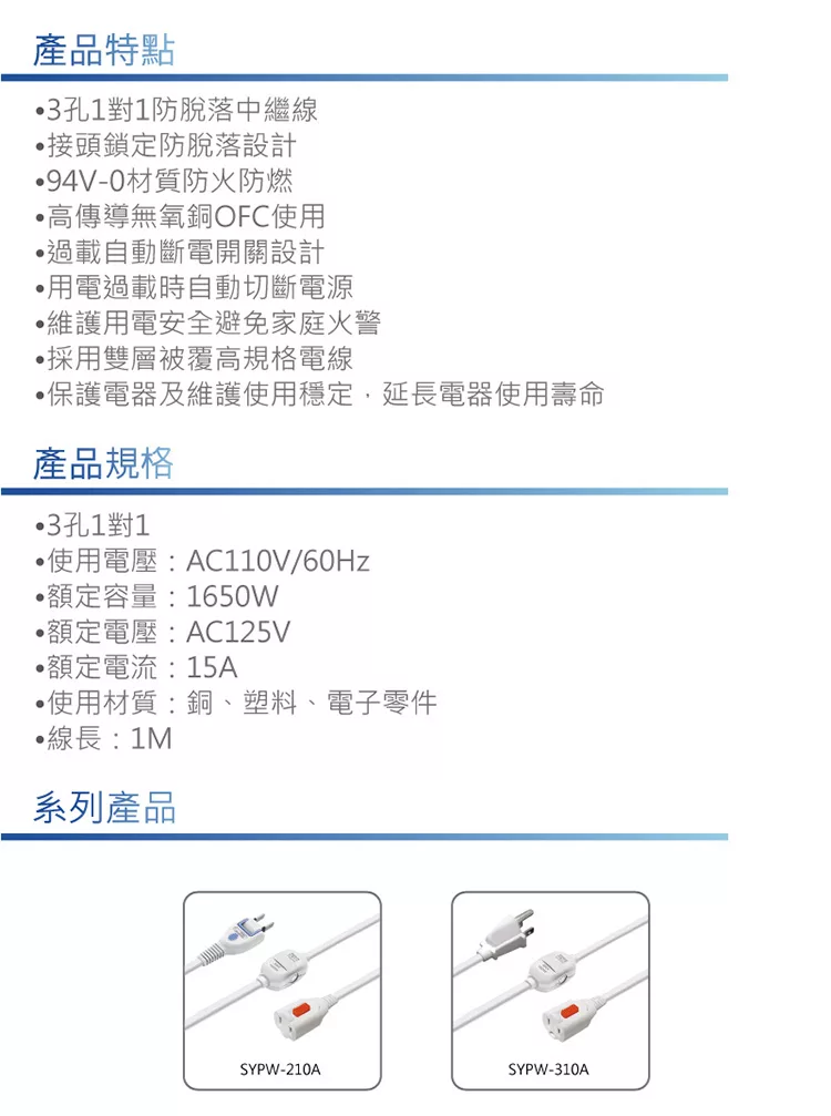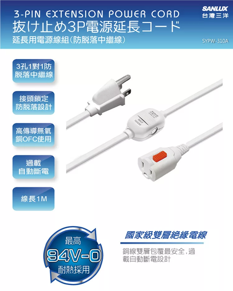 群加 PowerSyn 3P 一對一安全鎖中繼線 1M 黑(TZ13L010)