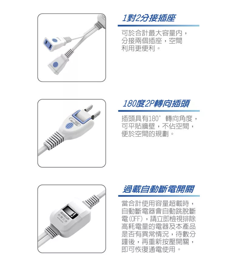 Tyson太順電業 213CC 2孔1切3座+雙USB充電延長線(轉向平貼插座)-0.9M