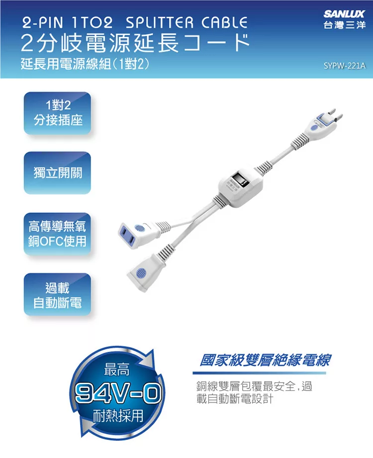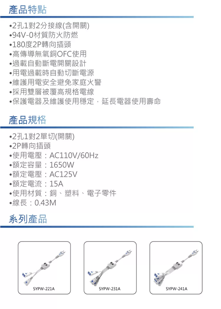 東億2孔3開關3插座延長線_2.5公尺(8.25尺) TY-S123-8.25尺