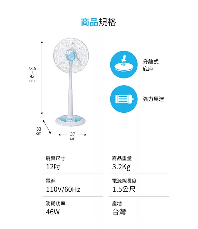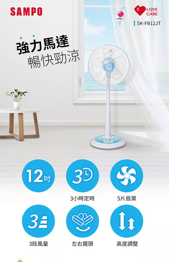 尚朋堂 12吋定時箱扇 SF-1225T 白藍