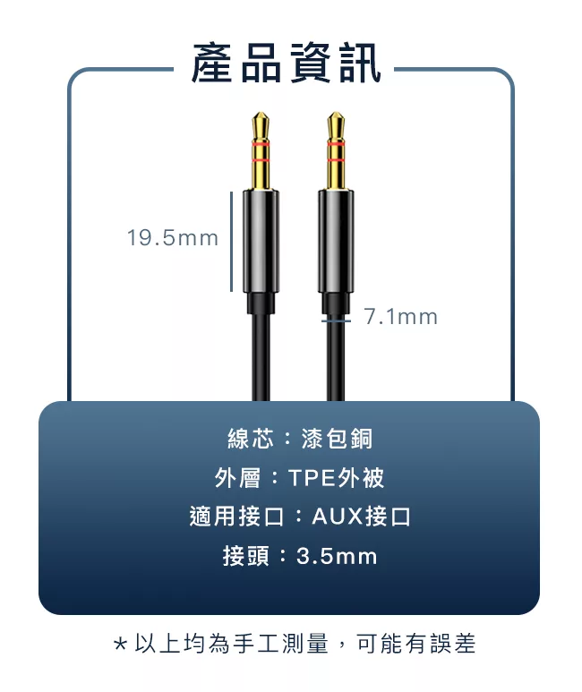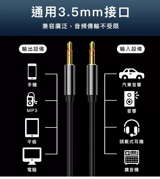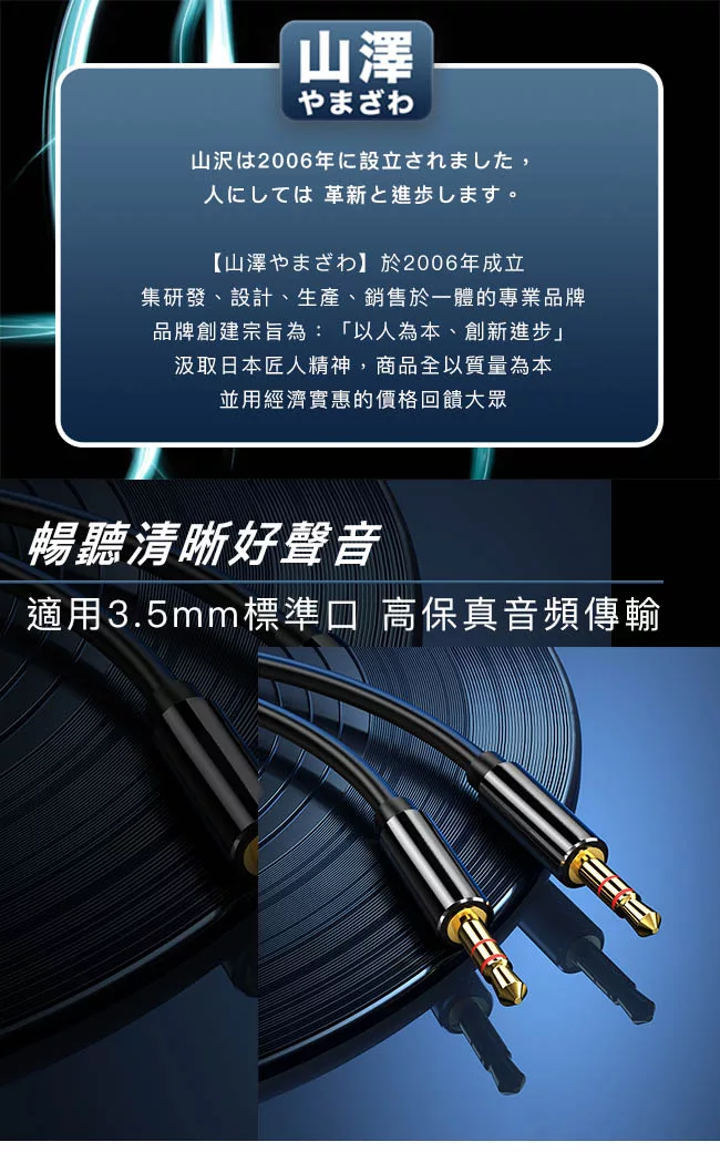山澤 3.5mm公對公Aux高保真抗干擾音源線 1M