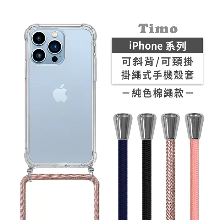 【Timo】iPhone 11 Pro Max 6.5吋 專用 附釦環透明防摔手機保護殼(掛繩殼/背帶殼)+簡約細皮繩 氣質黑