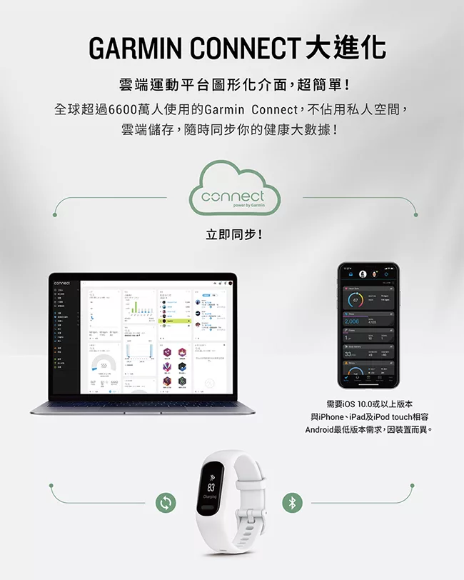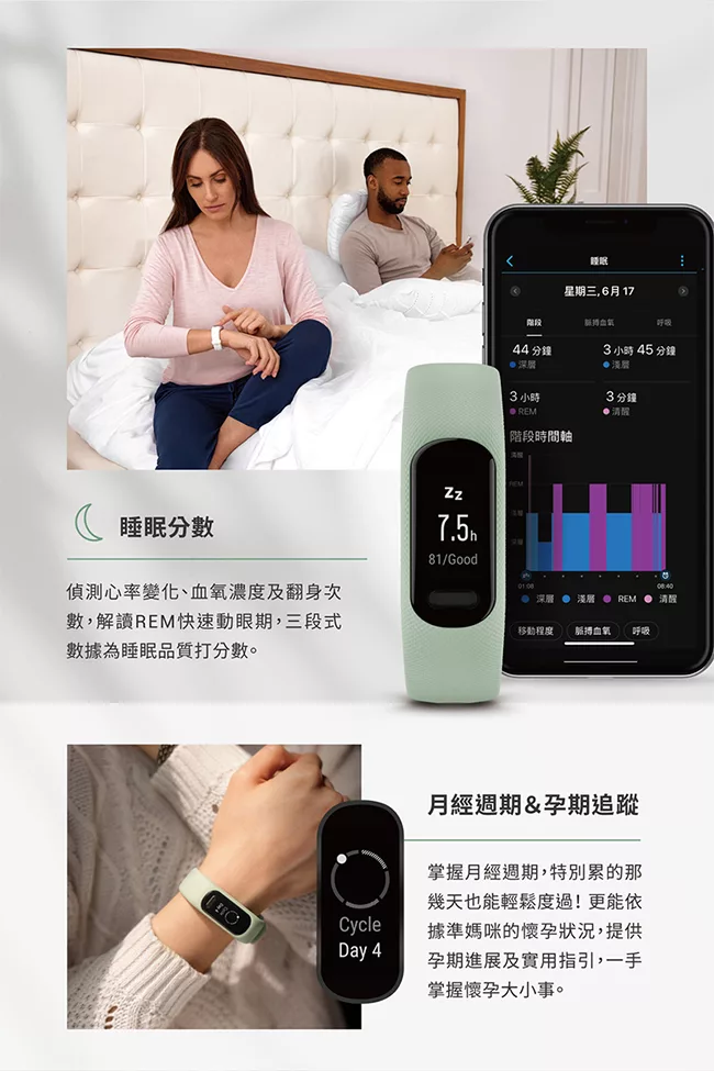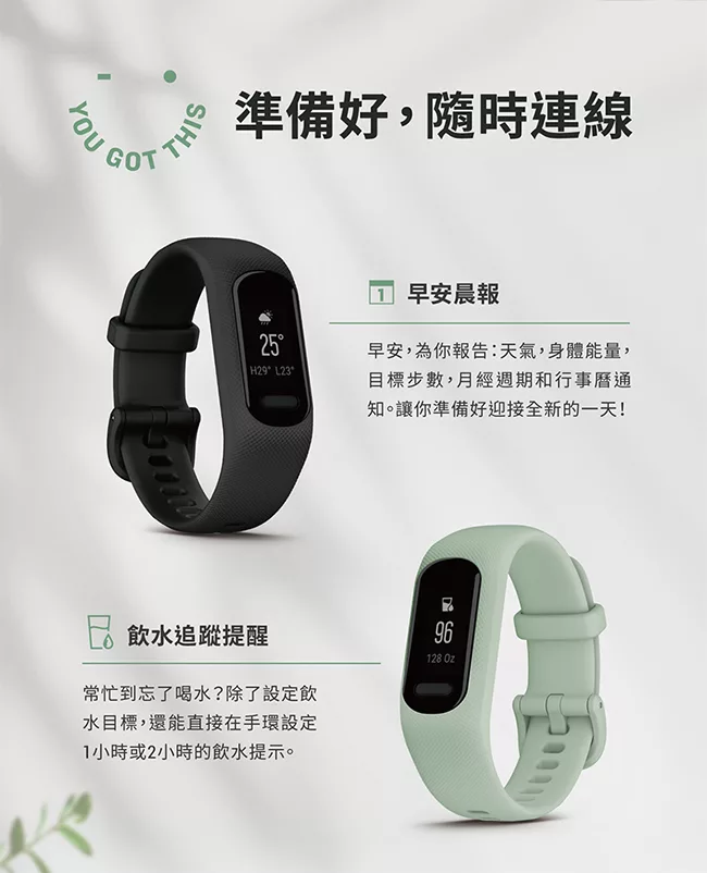 GARMIN vivosmart 5 進階版健康心率手環 晨光白(S/M)