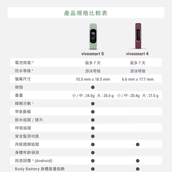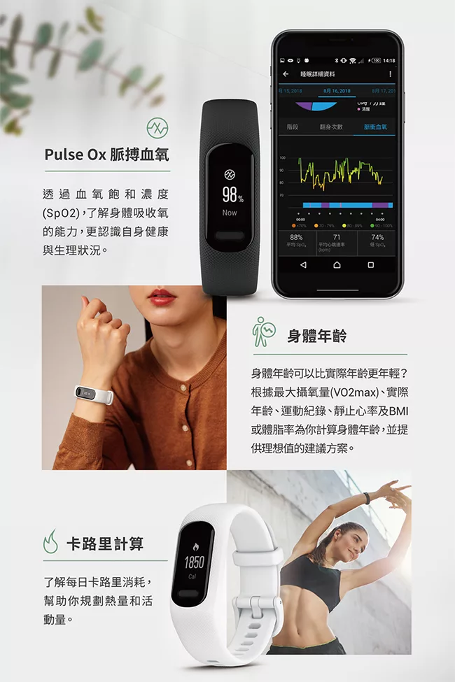 GARMIN vivosmart 5 進階版健康心率手環 薄荷綠(S/M)