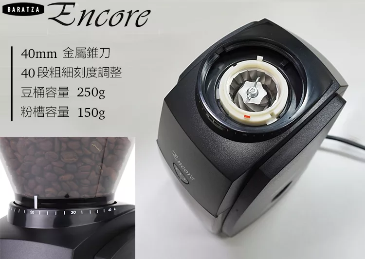 磨盤 Burrs-磨豆機的核心-磨盤,ENCORE 配備40mm錐刀式磨盤 (conical burrs),歐洲 Liechtenstein 製造,可以研磨不同粗細度的咖啡粉,從極粗到極細,均勻研磨,而其材質可耐用好幾年。
