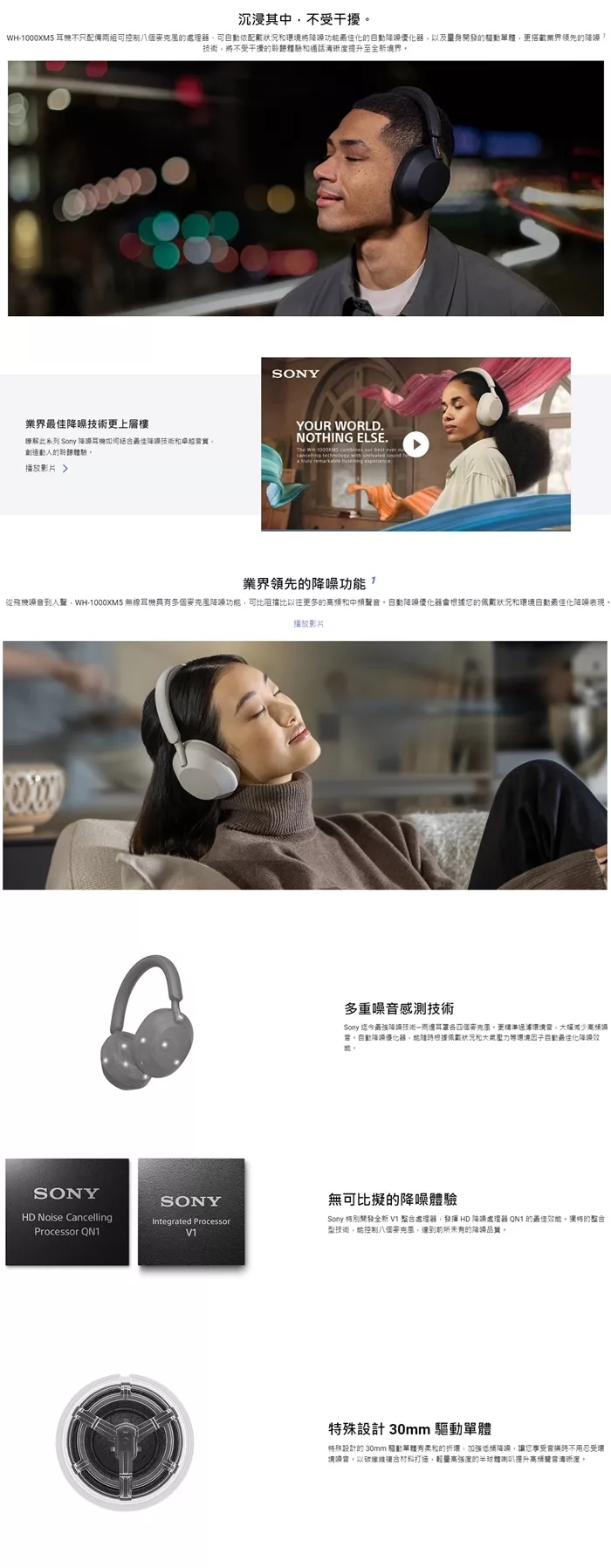 【限時優惠】SONY 索尼 WH-1000XM5 無線耳罩式耳機 全自動個人降噪 台灣公司貨 銀色