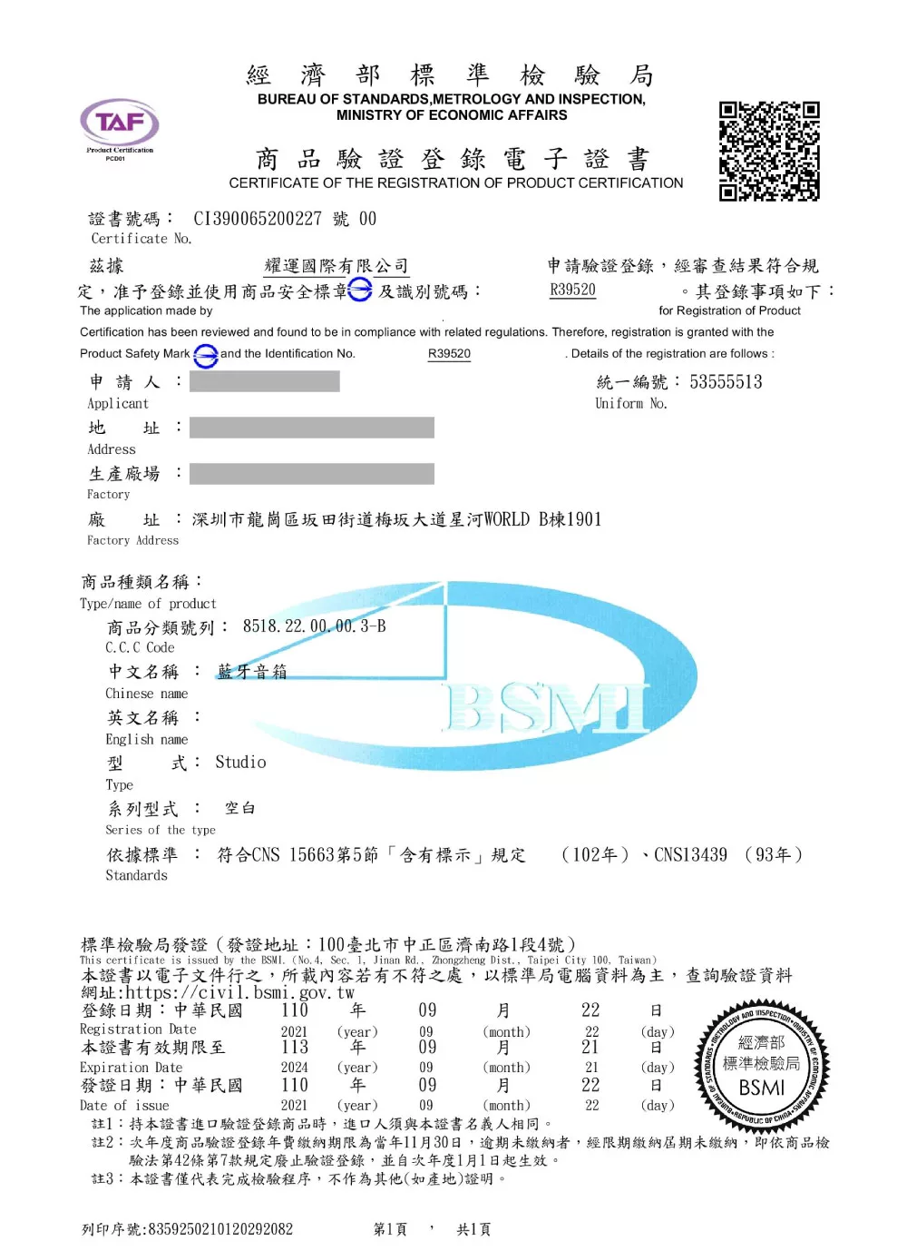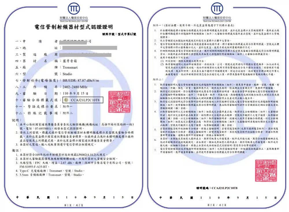 型式認證查詢連結:https://nccmember.ncc.gov.tw/Application/Fun/Fun016.aspx