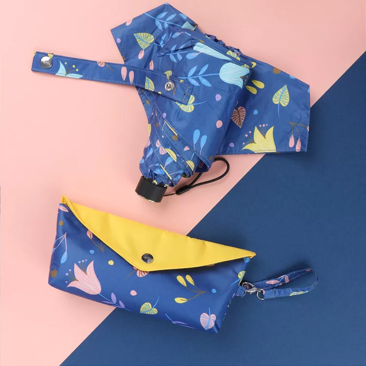 【Timo】莫蘭迪色系 抗UV迷你防曬遮陽折疊晴雨傘- 蔚藍色