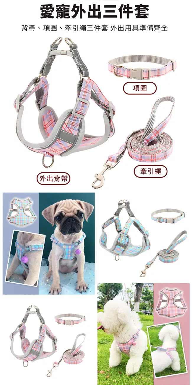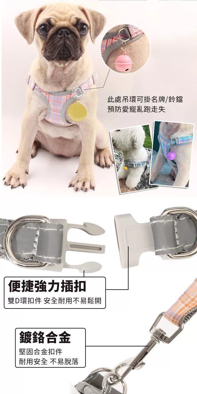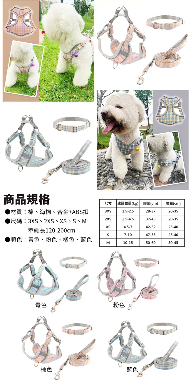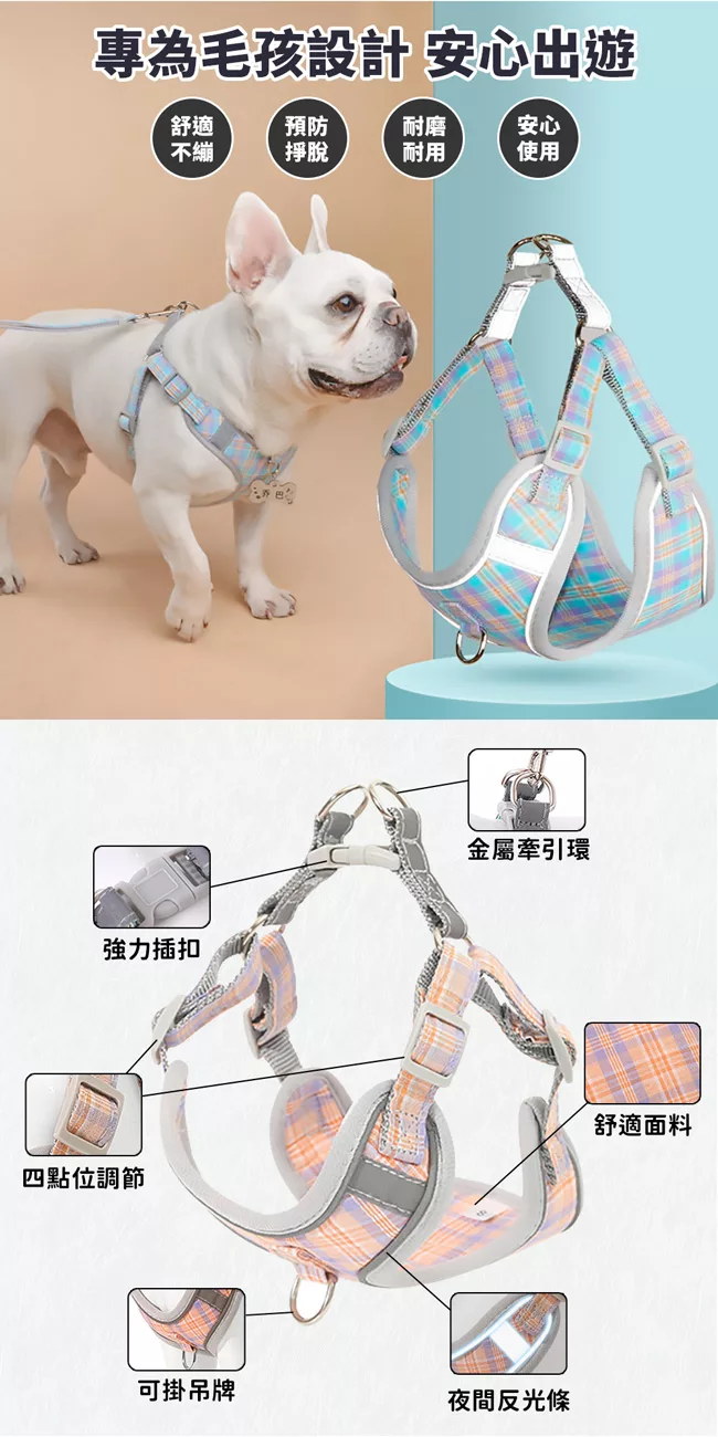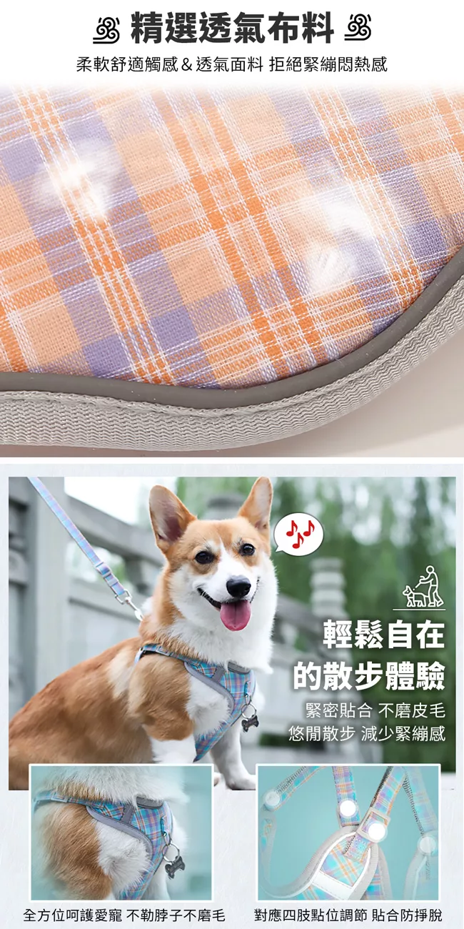 【LOTUS】背心式貓咪狗狗胸背帶附牽引繩 B款 拚色橙XXXS