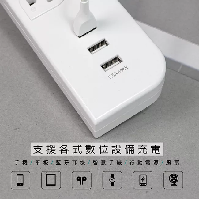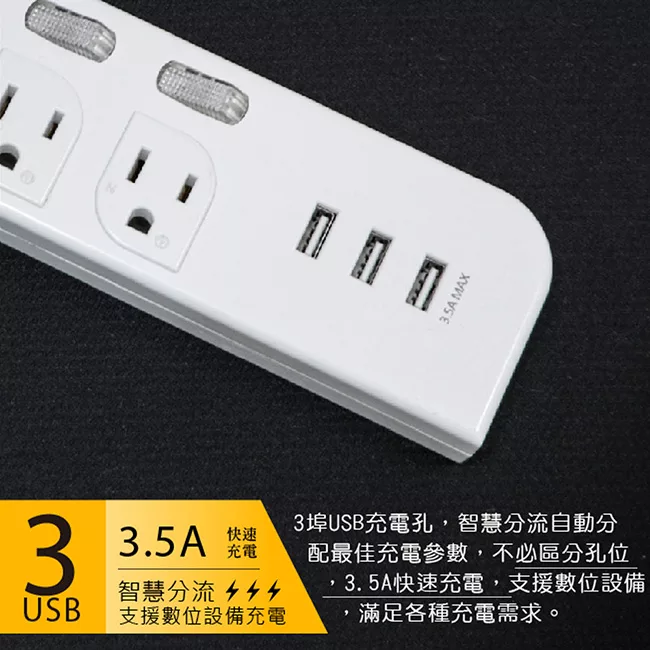 【帕拉丁】4開3插3P 35W氮化鎵USB超級閃充延長線 C-89PAL