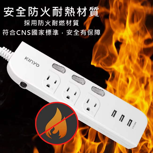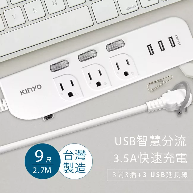 【KINYO】9尺一開三插|台製延長線|全新安規|2.7M延長電源線 CGU3139