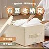 Besthot 日式棉麻布有蓋可折疊衣物收納箱-小款(買一送一/收納袋/收納盒/玩具盒)