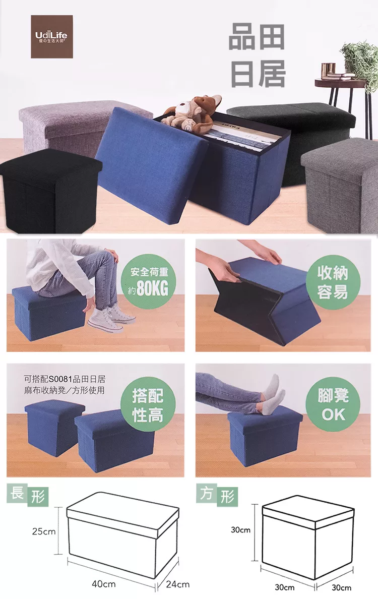 收納箱 X 座椅 X 腳凳,多用途使用,極簡設計附蓋防塵,在任何空間使用都很搭,雜物、玩具、小東西都有得放,是您收納整理好幫手。