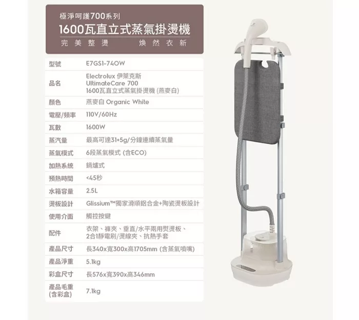 Electrolux伊萊克斯 兩用手持式蒸氣掛燙機E7GS2-72SW