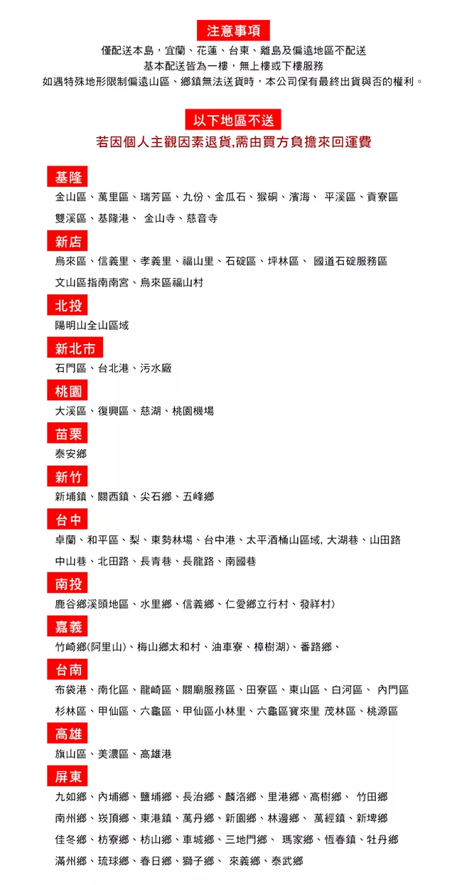 非屬上列品項之商品均享有到貨十天的猶豫期(含例假日)。退回之商品必須於猶豫期內寄回。