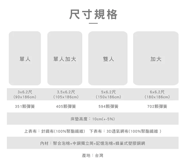 【Super Life】高級日系透氣豪華獨立筒床墊-單人3X6.2尺優雅白