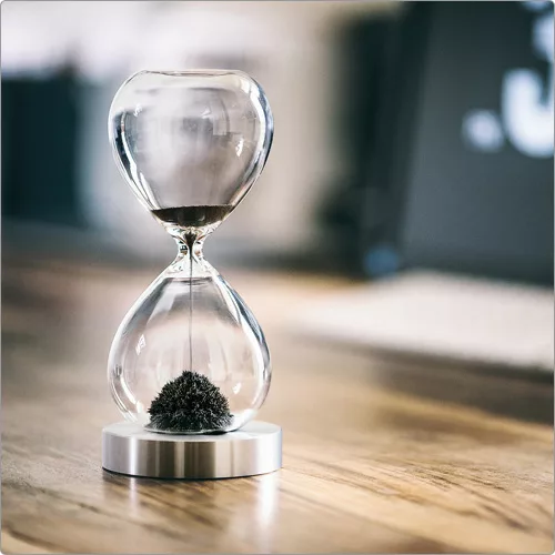 翻轉沙漏置於底座上,靜靜看著沙漏內的磁性粉末一粒粒落下,並在瞬間創造出多變形狀,時間彷彿停滯般,僅僅只是看著也能感受到片刻的緩慢與寧靜,是您舒壓療癒的時尚擺飾。