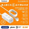 TESSAN 1開6插3P PD20W+USB方塊延長線-1.8米