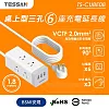 TESSAN 1開6插3P 3孔USB方塊延長線-1.8米