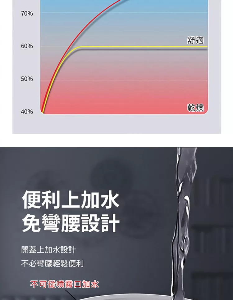 旋鈕調整噴霧量,頂部快速加水,方便快捷