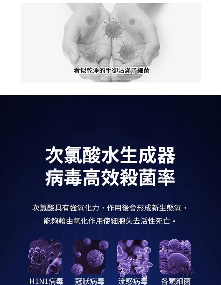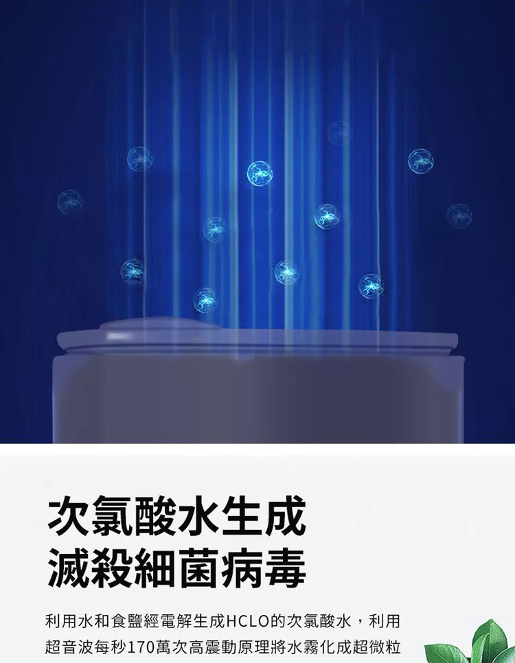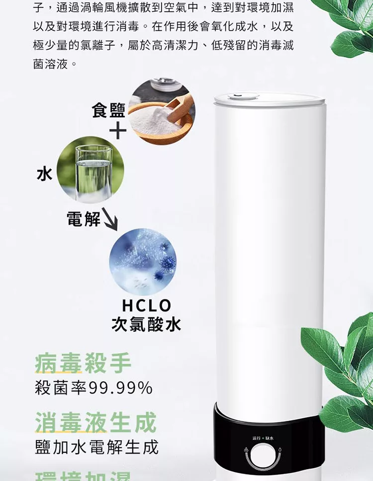 只需食鹽和水,即可產生次氯酸水霧化效果