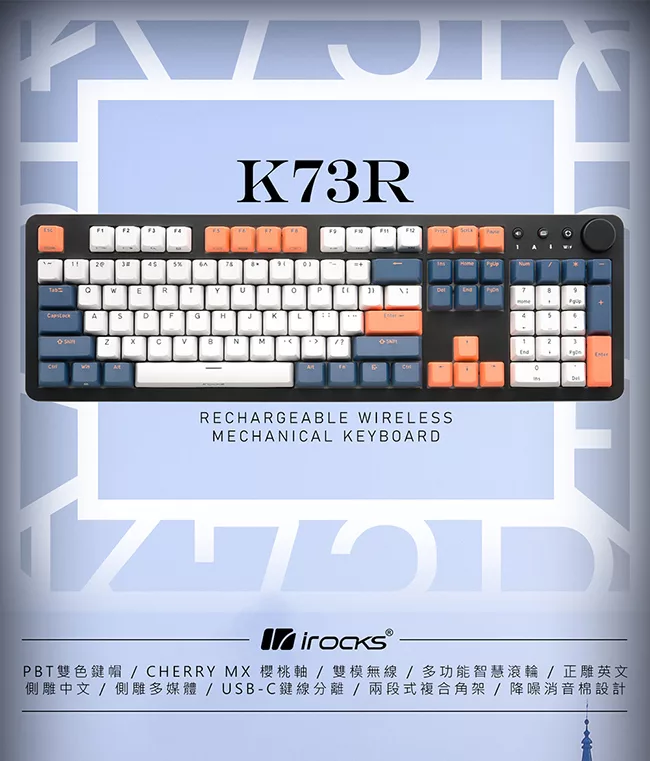 irocks K73R PBT 夕陽海灣 無線機械式鍵盤-Cherry茶軸